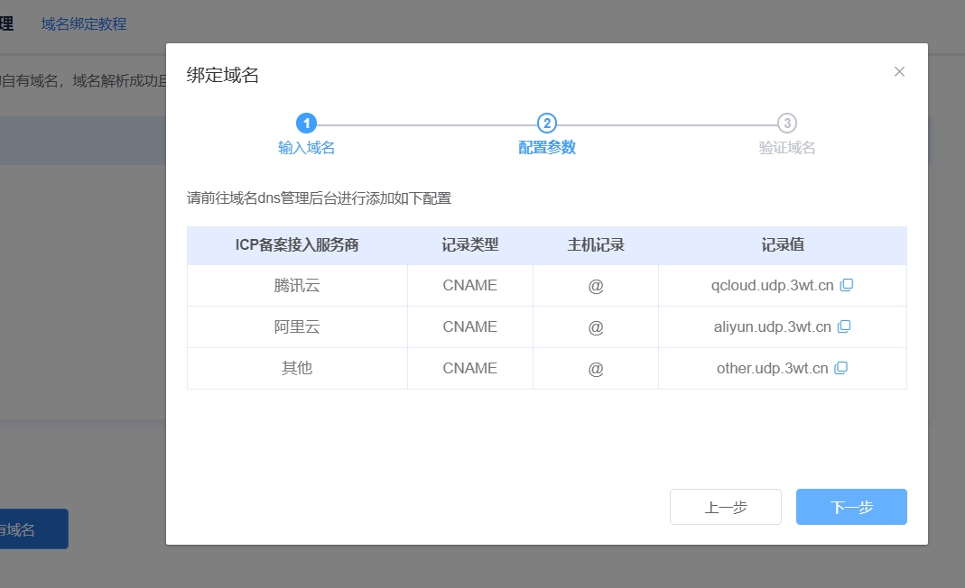 第四步:配置成功后,回到刚才第三步的页面,点击【下一步】,验证成功后,点击【绑定】